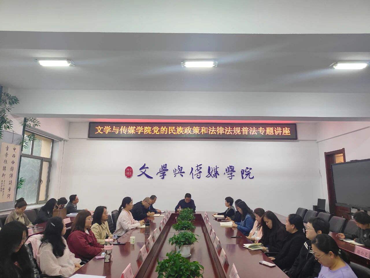 9月24日下午,beat365英国官方网站在汇文楼326会议室召开“党的民族政策与法律法规”普法专题讲座,特邀马克思主义学院的唐博超老师作讲座。此次讲座旨在加强教职工对民族法律法规的学习与理解,提升政策理论水平和法治素养。讲座由党总支书记王子鸣主持。