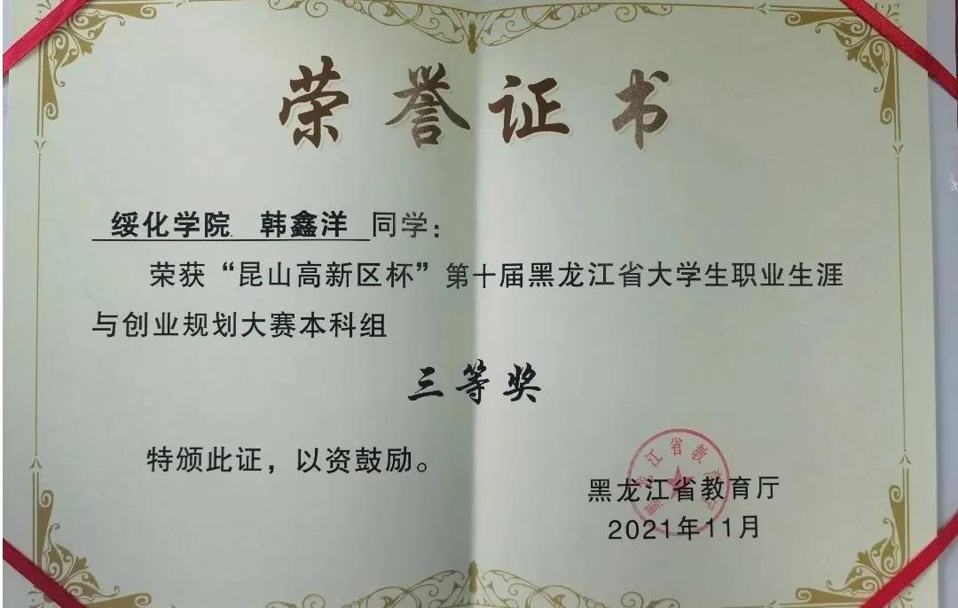 11月26日,由省教育厅主办的第十届黑龙江省大学生职业生涯与创业规划大赛落下帷幕。beat3652018级汉语言文学专业学生韩鑫洋在大赛中表现突出、斩获佳绩。