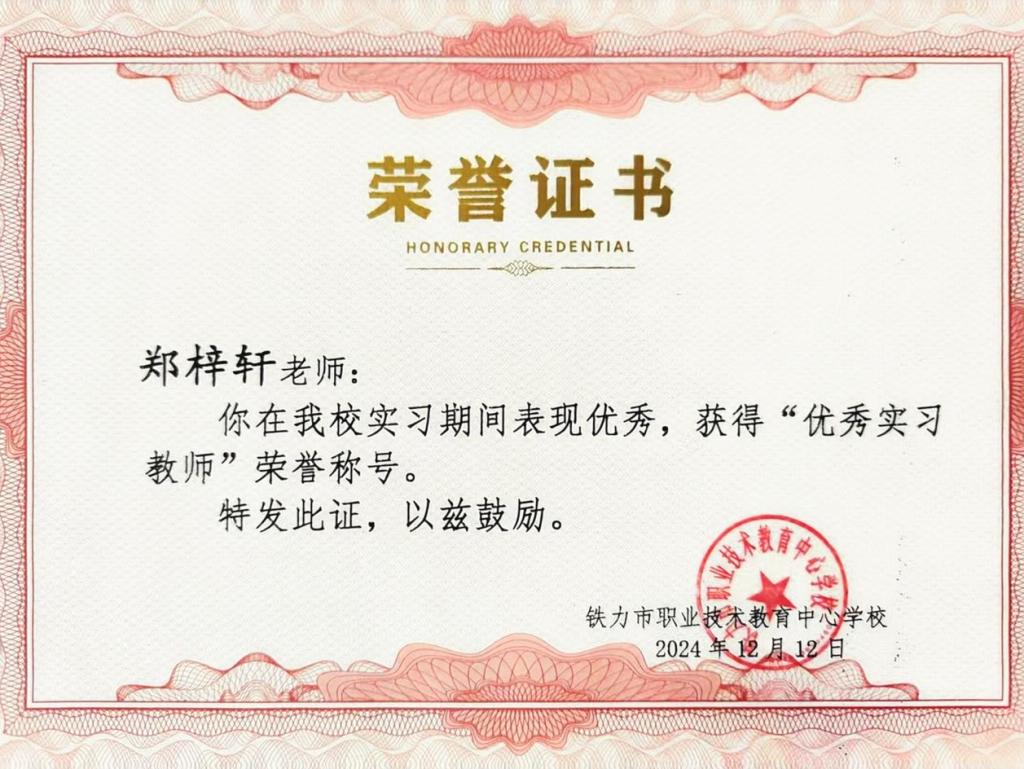 四个月时光飞逝,支教的丰硕成果化作一张张荣誉证书:长江乡一中授予田如祥“教学新星”称号,铁力职教中心为郑梓轩、刘岚颁发“优秀实习教师”表彰。