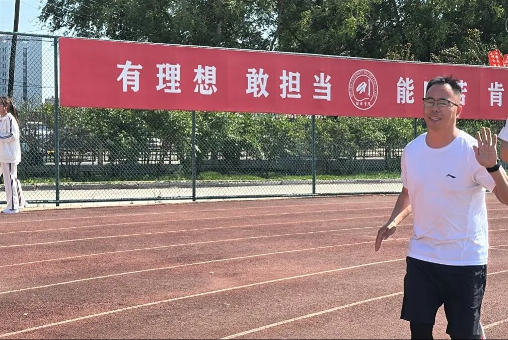 师生接力比赛跑道之上,平日严谨的老师们此刻化身赛道飞人,紧握接力棒,蓄势待发,每一次传递都凝聚着信任与力量。沉稳与矫健在疾驰中交融,速度与协作在呐喊里激荡,他们用奔跑诠释着团队精神,以全力冲刺展现讲台之外的澎湃风采!