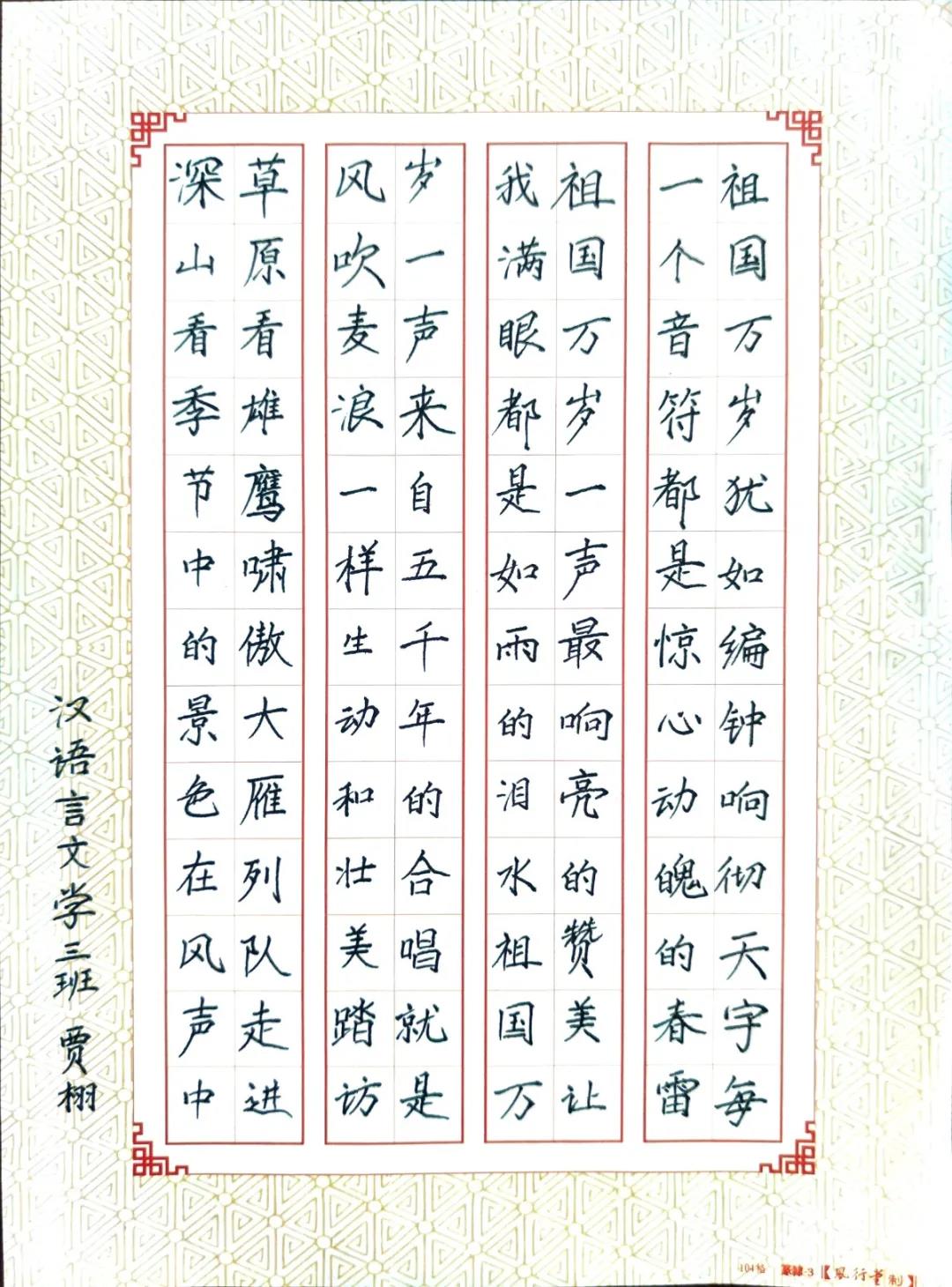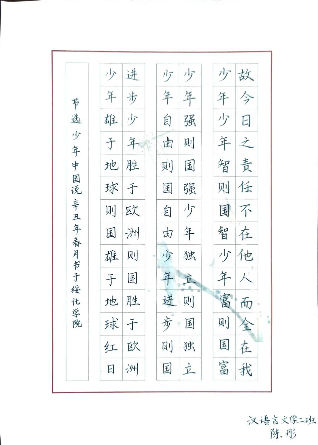 本次比赛规定以红色革命题材诗词和警示励志名言为书写内容,立足beat365专业学科特色,讴歌革命先烈英雄主义情怀,在革命诗句中感受红色政权来之不易、新中国来之不易、中国特色社会主义来之不易,不断厚植爱党、爱国、爱社会主义的情感,不断传承红色基因,肩负使命重担,献礼建党百年。