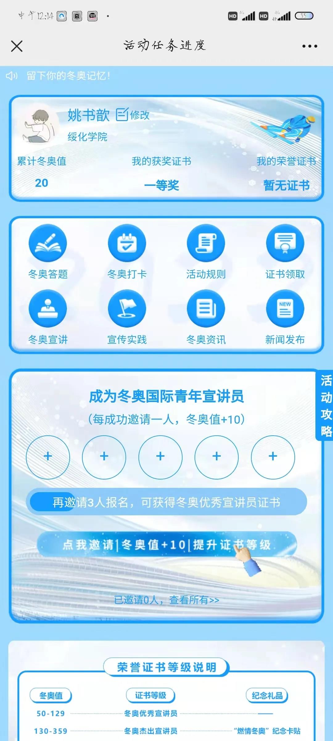 2008年北京夏季奥运会开幕式的表演和奥运健儿在比赛中的拼搏精神已经让世界备受震撼。如今冬奥会的圣火又将继续在这片东方沃土上点燃,相信每一个中国人都在期待着冬奥会的到来,同时,这将是又一次向全世界展示中国的机会。今年寒假,正值2022年北京冬季奥运会,为不断提高全体同学的民族自豪感,民族自信心,厚植爱国情怀。beat365英国官方网站积极组织文院同学开展“践行奥运精神,共促和谐发展”专题社会实践活动。希望借此机会让同学们身体力行,参与冰雪运动,让奥林匹克精神点亮青年梦想,让冬季运动融入亿万民众。接下来,让我们一起看看beat365学子们的作品及感悟吧!