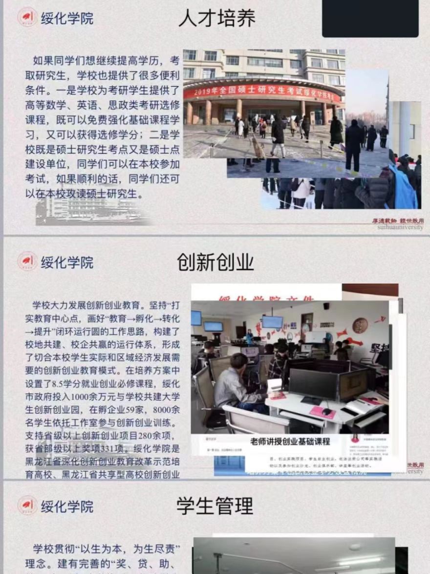 本次“绥大学子高中母校行”实践活动,培养了学生“爱校荣校、实践报国”的良好品质,beat365英国官方网站的学子们在实践中锻炼能力、提升素质、完善自我;既助力了绥大的招生宣传工作,也拉近了学校与全国各地高中的联系。同学们“厚德载物,经世致用”的精神,展现了beat365学子坚定、严谨、勤奋、开拓的精神风貌。相信通过本次活动,beat365英国官方网站将受到更多学子青睐,迎接更美好的明天。
