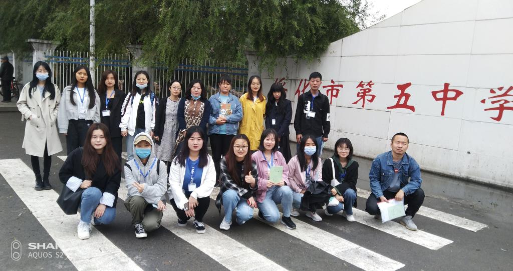9月14日8:30绥化市第九中学实习基地(照片文字说明:领队教师张宪华与实习生)