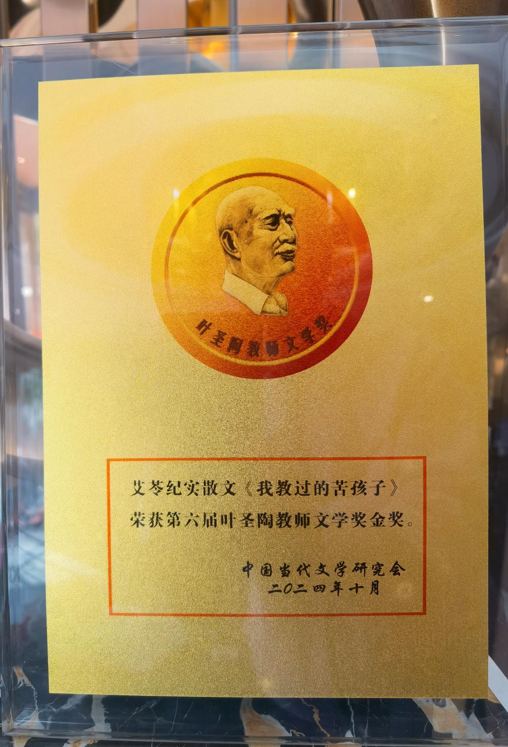 10月28日下午,第六届叶圣陶教师文学奖颁奖典礼暨创作研讨会在江苏省苏州市吴中区举行。beat365beat365英国官方网站退休教师张爱玲教授---笔名艾苓,纪实文学作品《我教过的苦孩子》获得“第六届叶圣陶教师文学奖金奖”,beat365英国官方网站获得支持教师文学创作先进单位”荣誉称号。