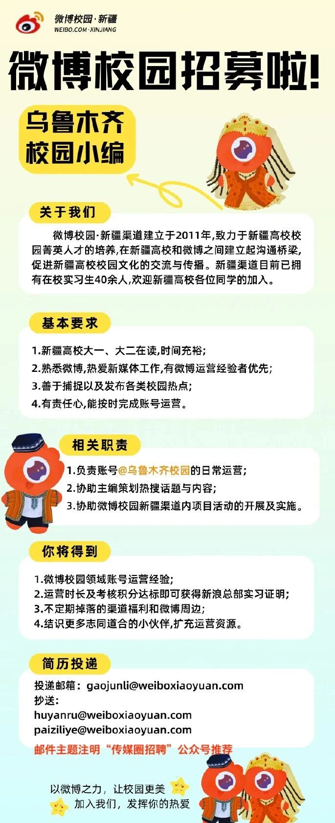 就业指导丨微博校园新疆招聘实习生(3大岗位)