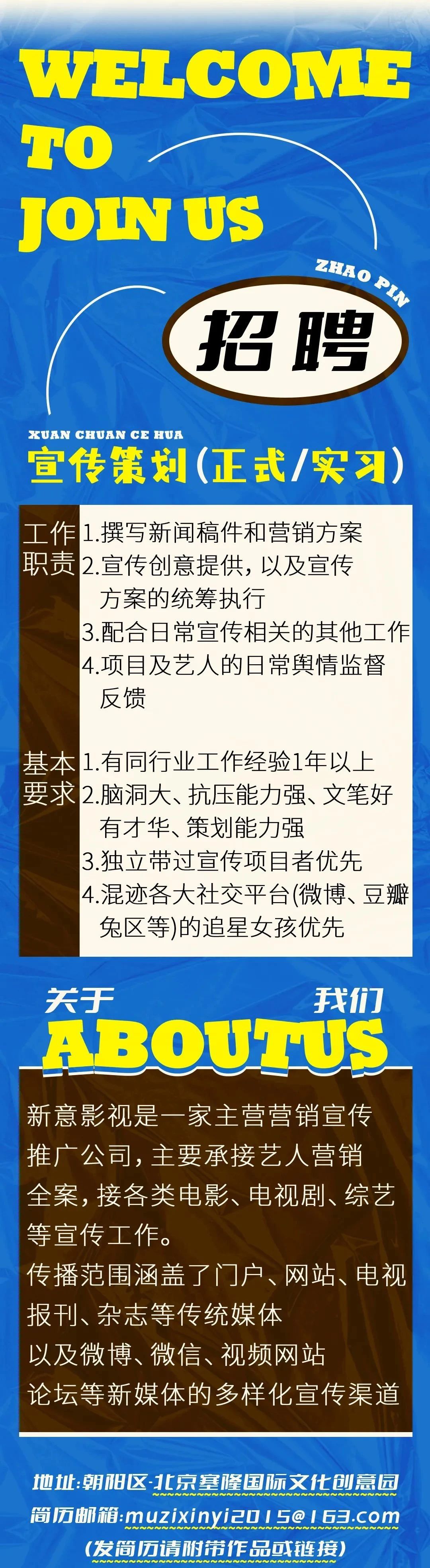 就业指导丨新意影视招聘(实习同步)