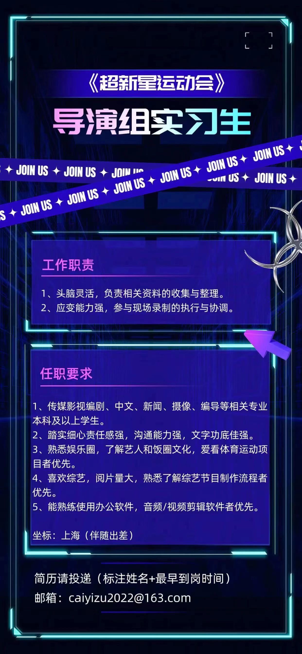 就业指导丨综艺《超新星运动会》招聘实习生