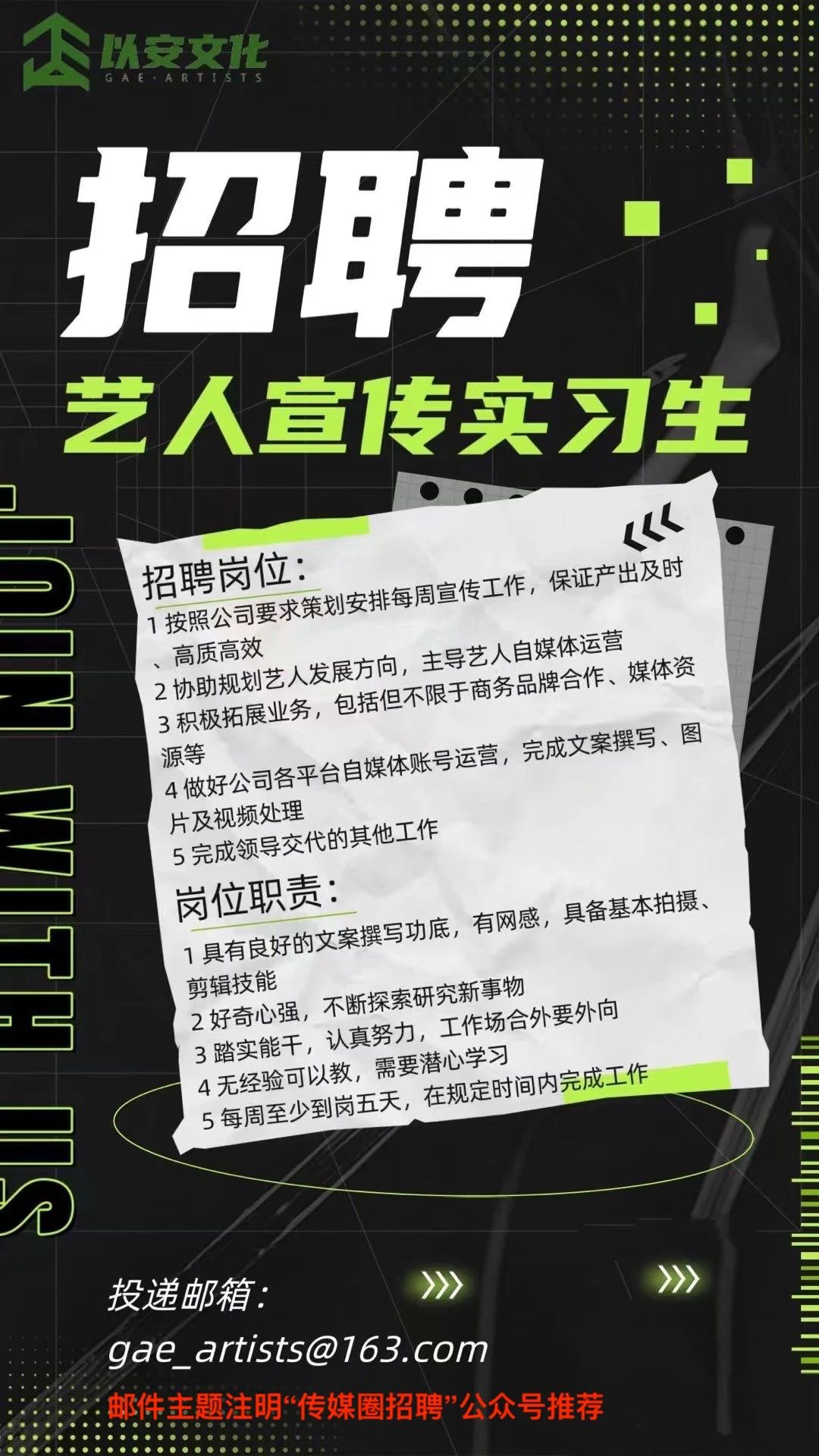 就业指导丨以安文化招聘艺人宣传实习生