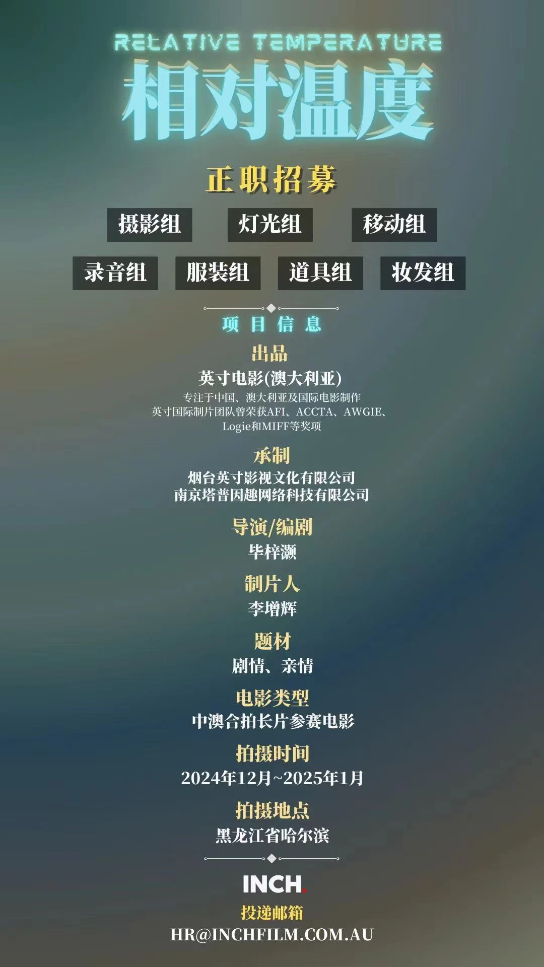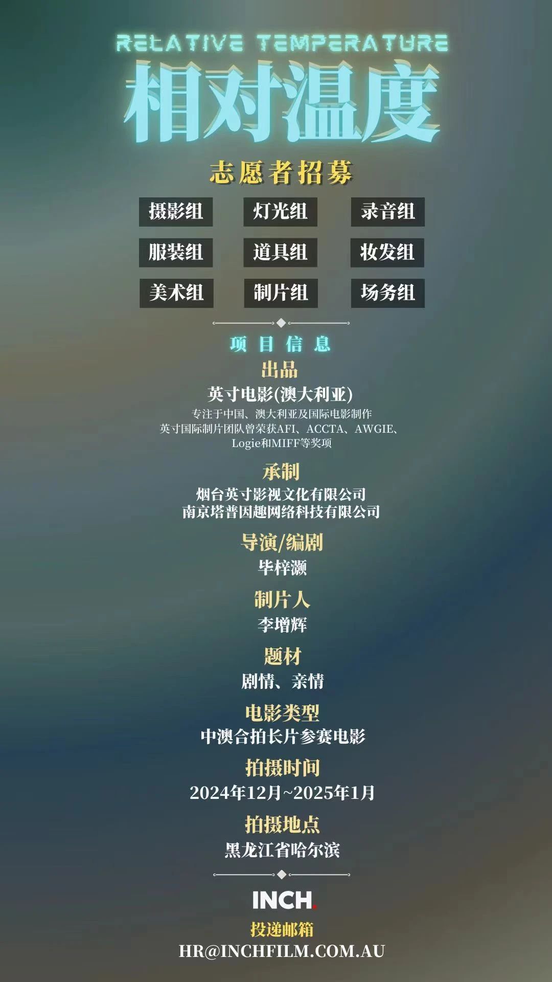 就业指导丨中澳合拍电影剧组《相对温度》正职招募 /志愿者招募