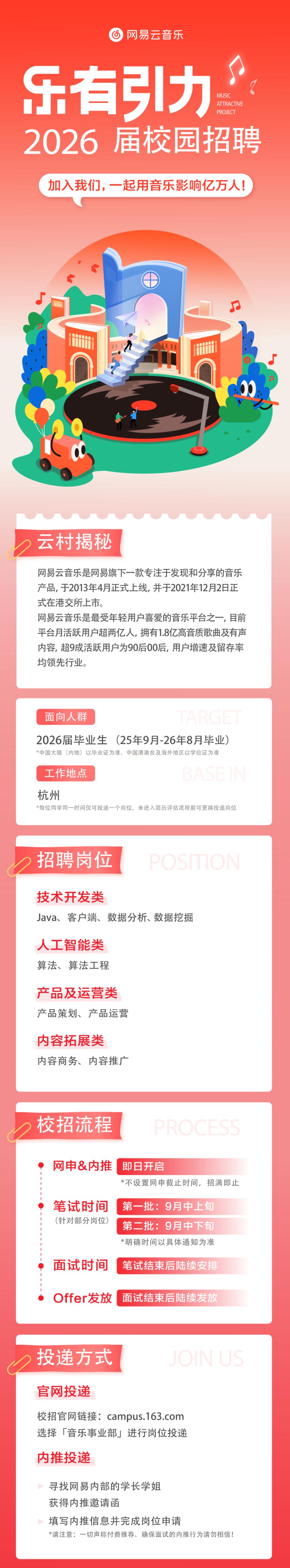 就业指导丨网易云音乐2026秋季校园招聘公告!