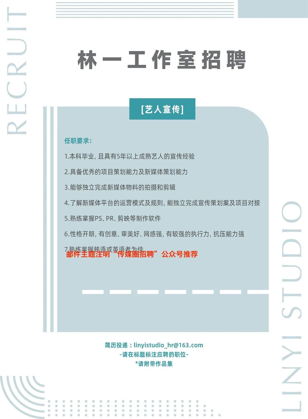 就业指导丨林一工作室招聘艺人宣传!