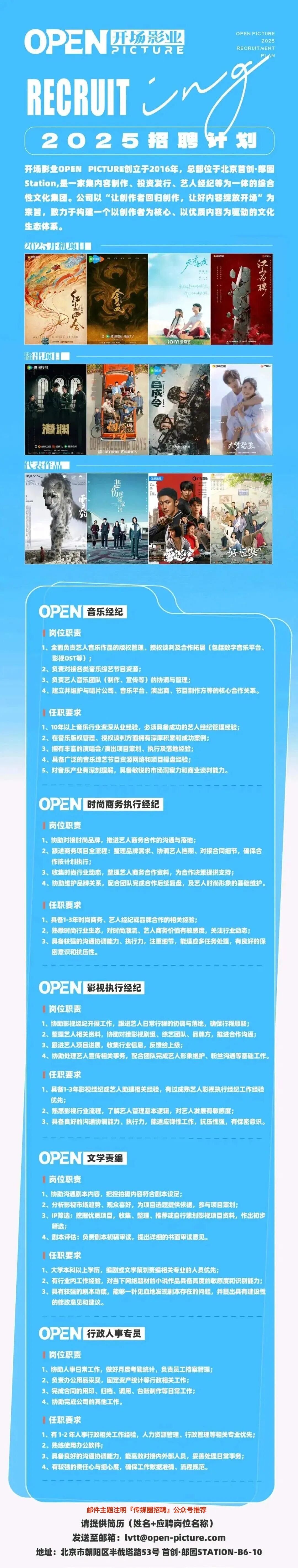 就业指导丨开场影业招聘公告(5大岗位 全部正职)