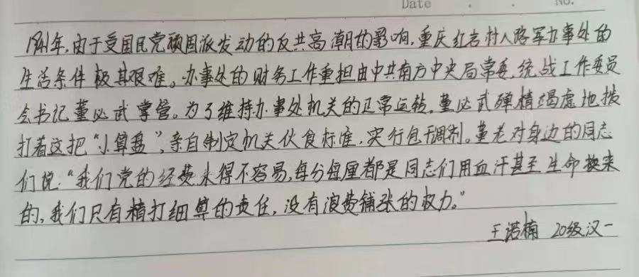 2016年3月5日,董必武诞辰130周年之时,《人民日报》发表了《纪念中国共产党的模范的领导者董必武同志》,其中写道:“他对中国革命作出过重大贡献,却一直‘甘为民仆耻为官’,从不谈自己的功绩,从不居功自傲。新中国成立后,无论担任什么领导职务,他都以‘新功未建惭高坐,老本无多啃早完’的谦逊态度,践行全心全意为人民服务根本宗旨,为党建功、为国立业、为民造福。”