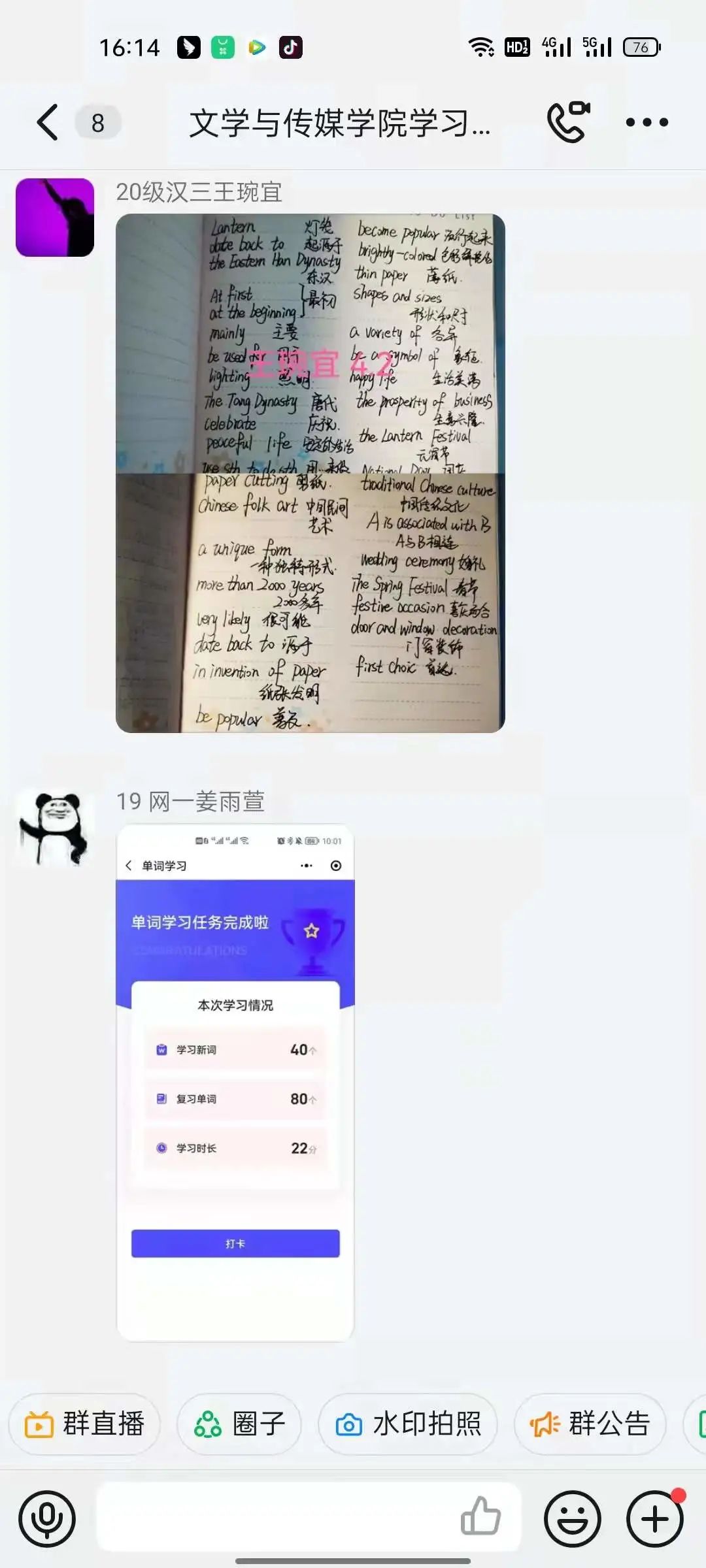 在本次的活动中,beat365学生热情高涨,积极主动,做到了即使是处于线上教学,也坚持每天学习打卡,这既提高了自己的知识储备,也提升了自身的学习效率。学习是我们终身的事情,好习惯也是我们一生的财富。在此,希望beat365学生都能够做到秉持初心,为自己的理想而努力拼搏,积极向上!文学与传媒学习部撰稿:曲智、佟佩然