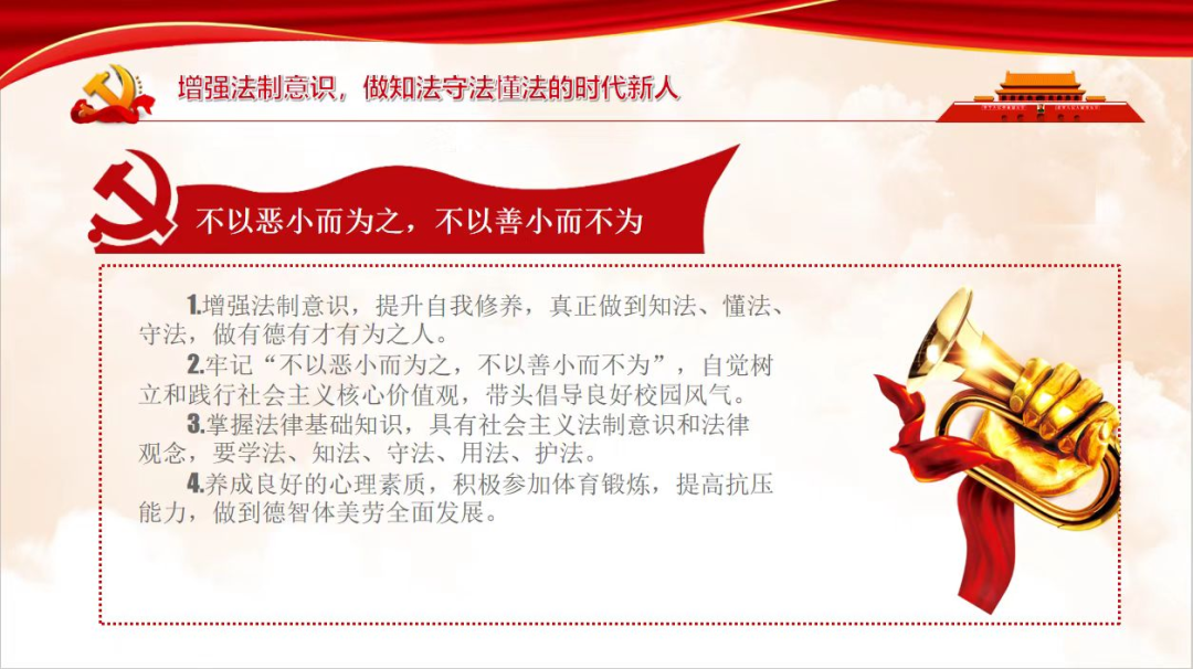 她督促学生掌握法律基础知识,养成社会主义法制意识和遵纪守法的观念,要学法、知法、守法、用法、护法。养成良好的心理素质,积极参加体育锻炼,提高抗压能力,做到德智体美劳全面发展。