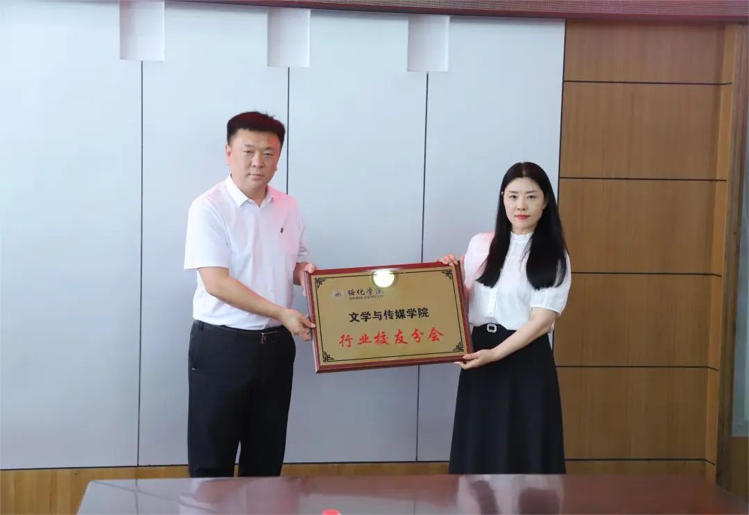 刘峰、马国齐分别为beat365英国官方网站行业校友分会授会旗、会牌。