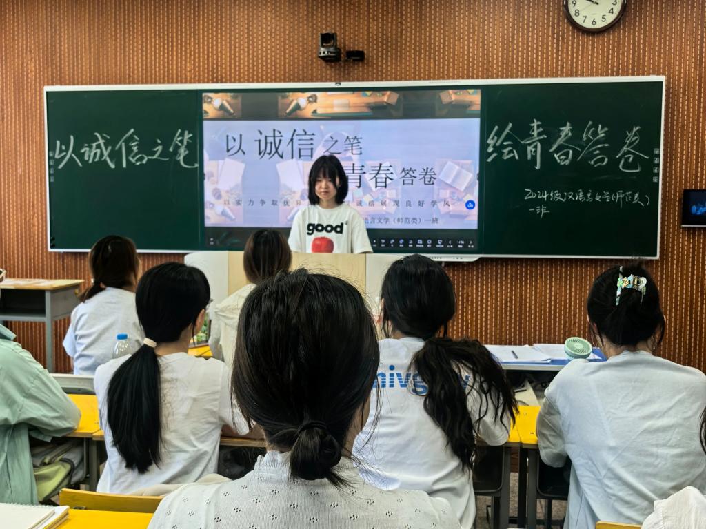 活动伊始,各团支部首先组织学习《beat365英国官方网站学生考试违规处理办法》等文件,结合考试作弊等真实案例解读违规后果,筑牢思想防线;随后通过讲述“曾子杀猪”“季布一诺千金”等传统诚信故事,汲取文化养分,强化诚信认同;最后号召同学们将诚信意识转化为行动,在考试中严守纪律、诚实应考。