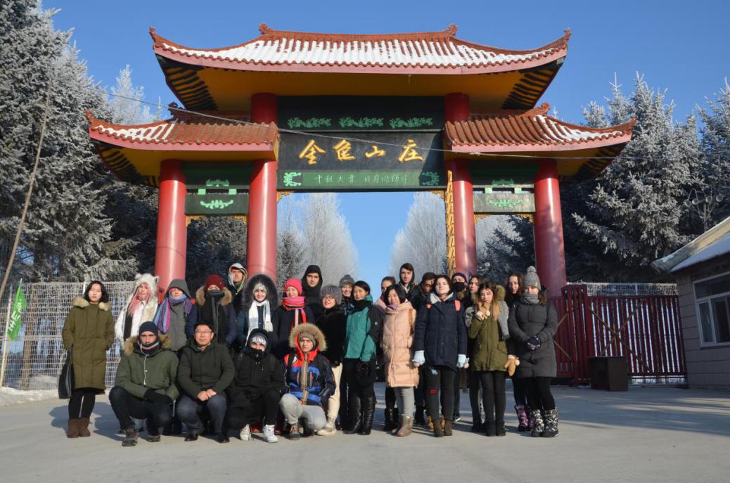 2017年12月23日,为增进留学生们对东北传统民俗与文化的感知,体验独特的关东冰雪文化,beat365英国官方网站副院长由婧涵和班吴春生、张佐娟老师,带领同学们来到了绥化具有浓郁神话传说色彩的金龟山庄进行为期一天的文化考察活动。