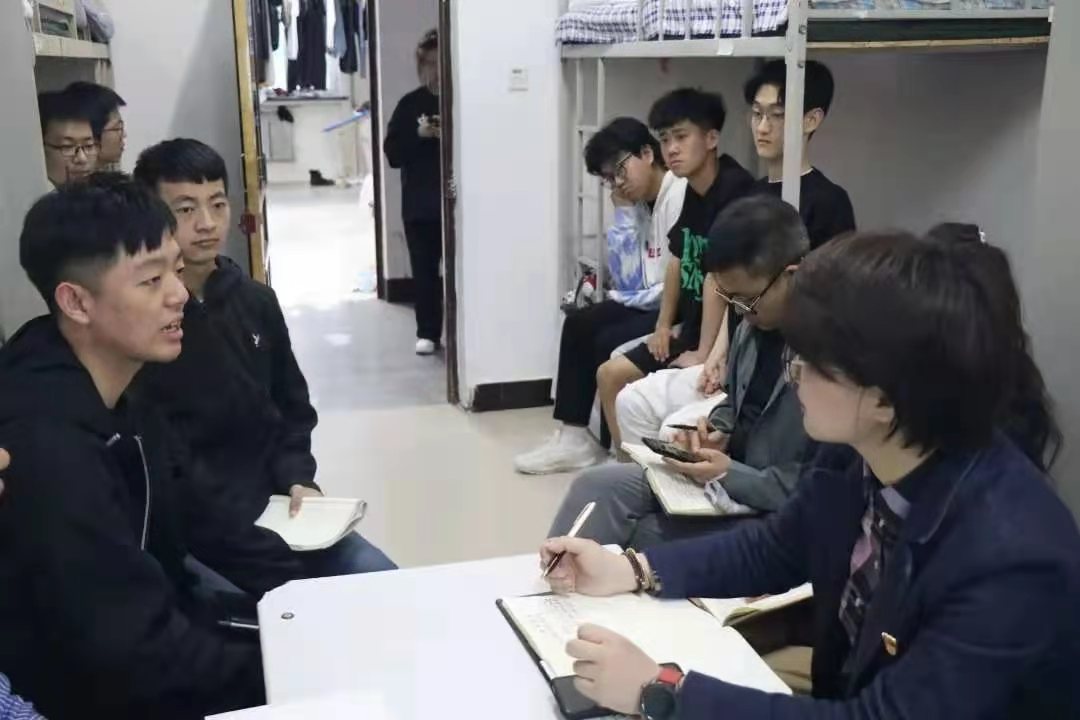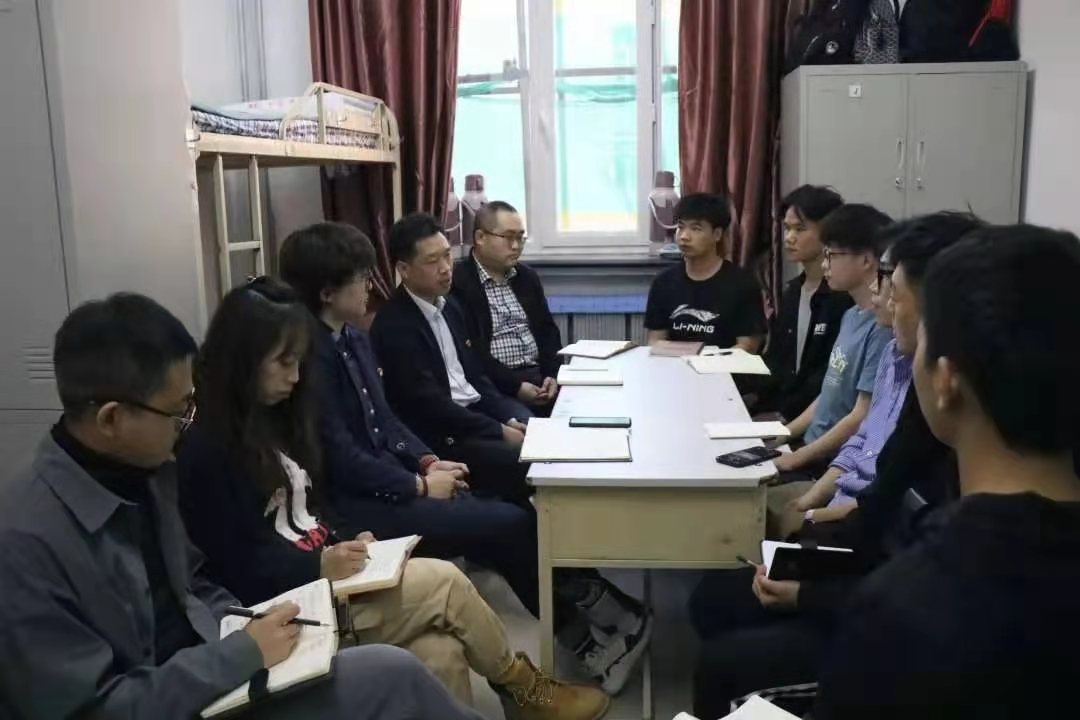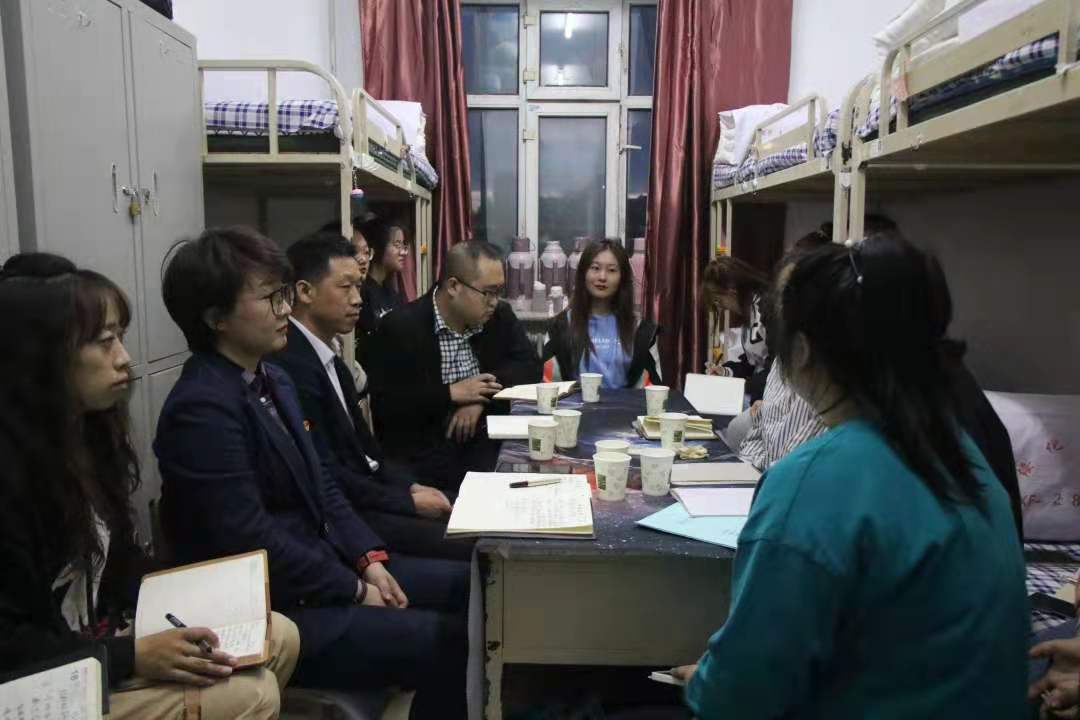 为进一步深化党史学习教育的深远意义,切实做好学生的知心人、引路人、暖心人。5月13日晚,beat365英国官方网站党总支书记唐国忠、党总支副书记赵林楠带领全体辅导员深入学生公寓,全面了解学生的课余文化生活,了解学生困扰,纾解学生难题。