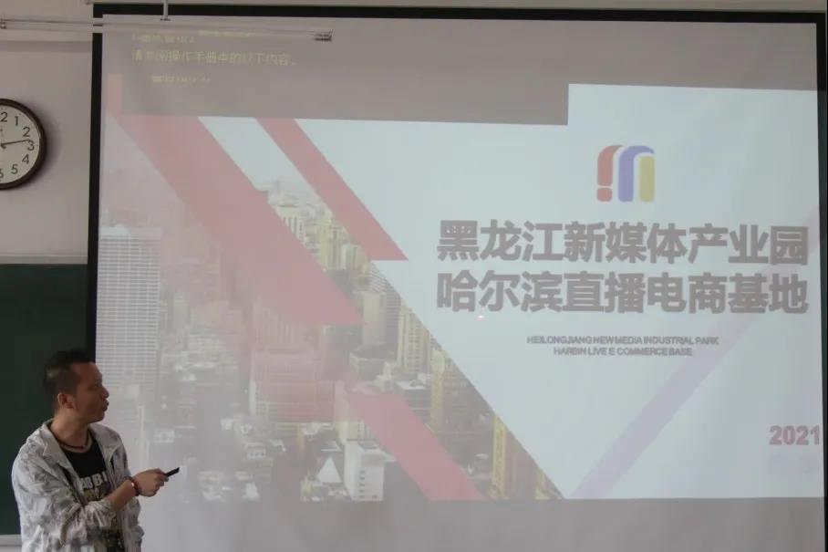 宣讲会上,姚殿龙从园区介绍、园区业态、行业优势、人才需求和职业规划五个方面向同学们介绍了黑龙江新媒体产业园。园区中包含中国(哈尔滨)跨境电商基地、新媒体运营基地、电商供应链基地和云商会展平台,可以满足同学们不同的行业需求。针对省内人才流失,姚殿龙介绍了产业园区对于省内人才培养的相关政策。在互动环节中,同学们积极提问,姚殿龙耐心解答,现场气氛十分活跃。