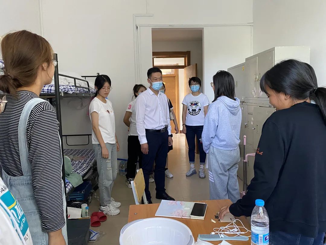 为了欢迎新同学的到来,让新生更好的适应大学生活。9月5日下午,beat365党总支书记唐国忠、副书记兼2019级辅导员赵林楠、2021级辅导员韩金凤、2020级辅导员殷跃一同来到第四公寓、第十一公寓慰问2021级新生。