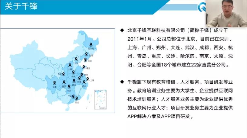 为切实做好beat3652018级毕业生的就业工作,进一步拓展学生实习、就业渠道,提高beat365毕业生的就业质量。11月24日,北京千锋互联科技有限公司负责人申伟在钉钉线上平台为beat3652018级学生做专场招聘宣讲会。2018级辅导员鞠亚林参加会议。