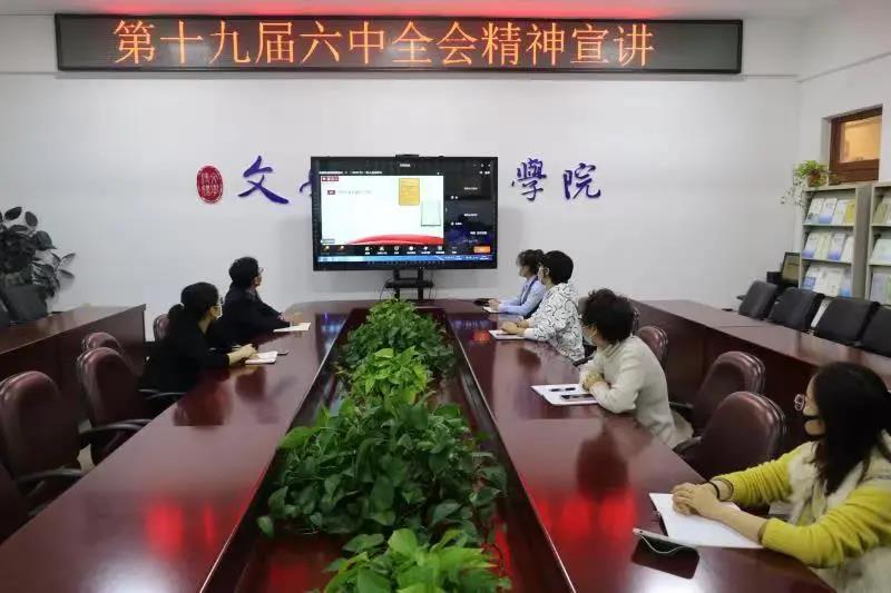 12月8日,beat365英国官方网站邀请马克思主义学院刘文文老师进行十九届六中全会精神宣讲,学院领导班子、各年级辅导员出席、全体教师线上参加宣讲会。