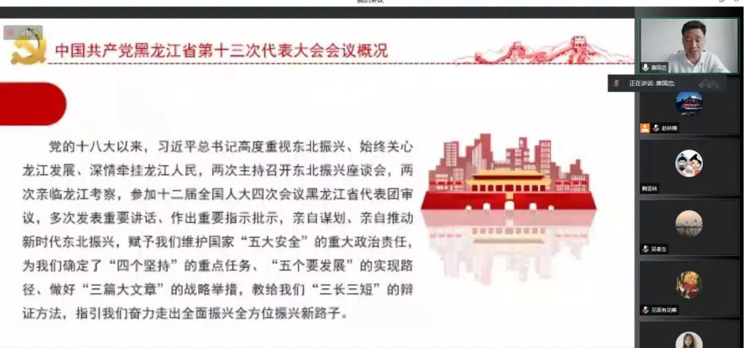 会上,重点学习传达了中国共产党黑龙江省第十三次代表大会精神。