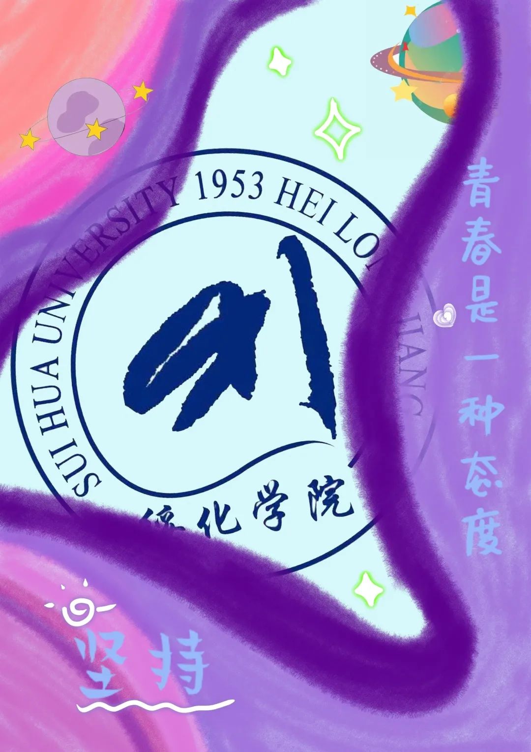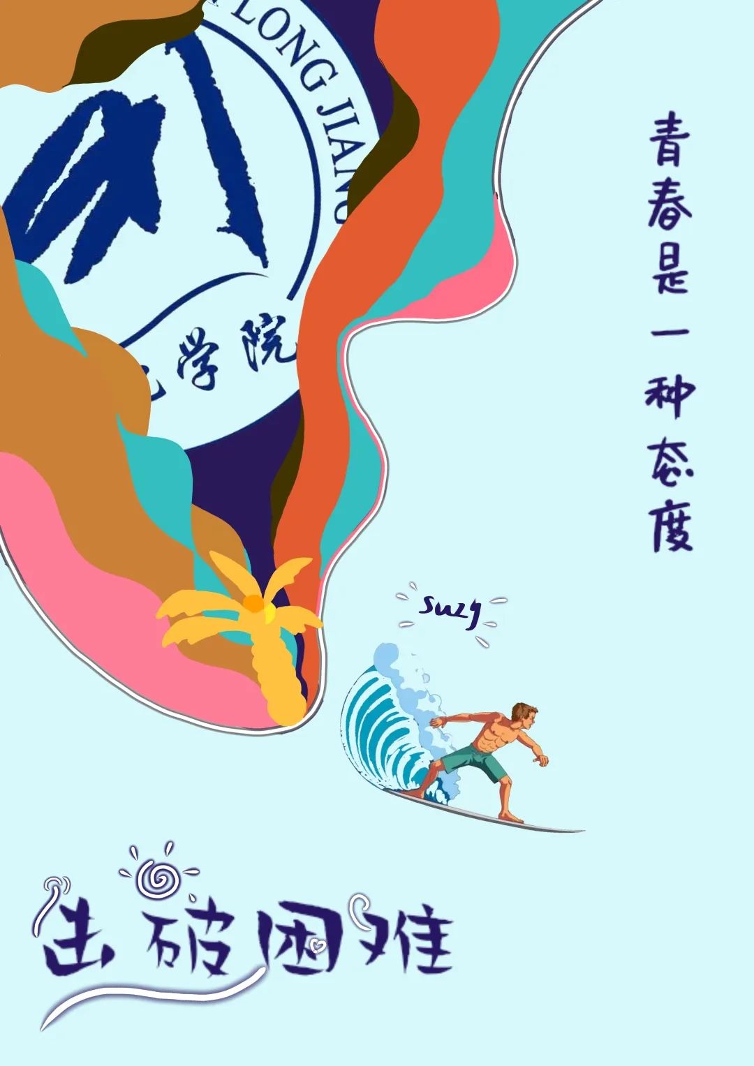 今天展播新媒体海报设计二等奖经济管理学院市场营销专业王宇婷的作品:《青春与绥大》
