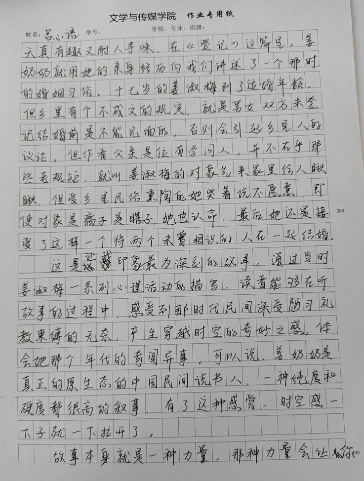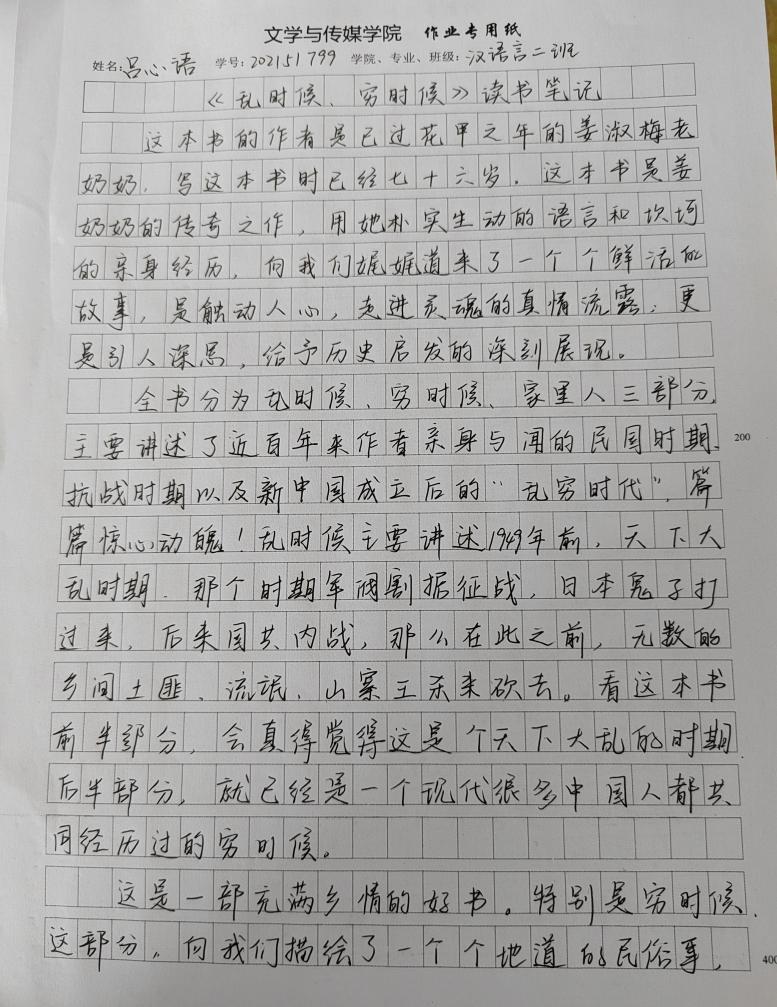 2021级汉语言文学二班吕心语