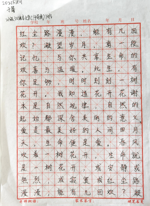 2021级汉语言文学一班于馨