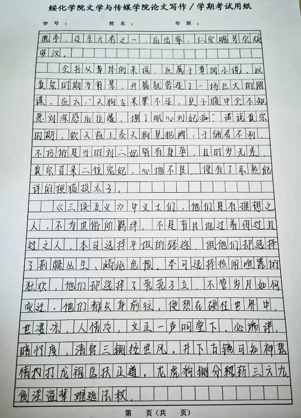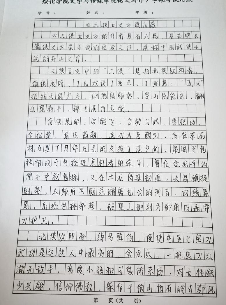 2020级汉语言文学三班任楠