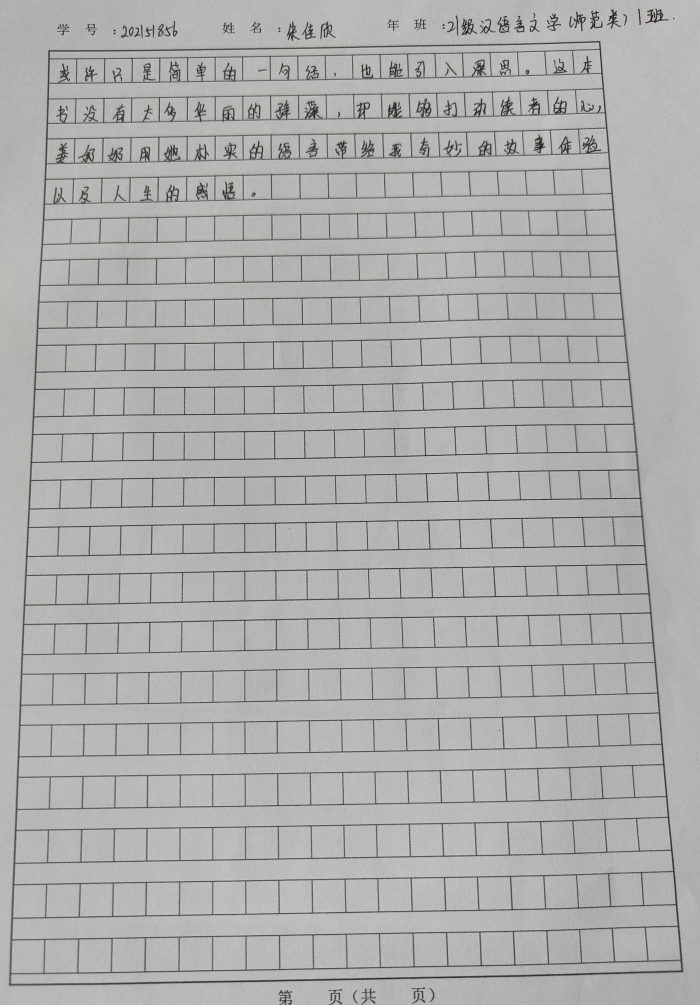 2021级汉语言文学一班朱佳欣