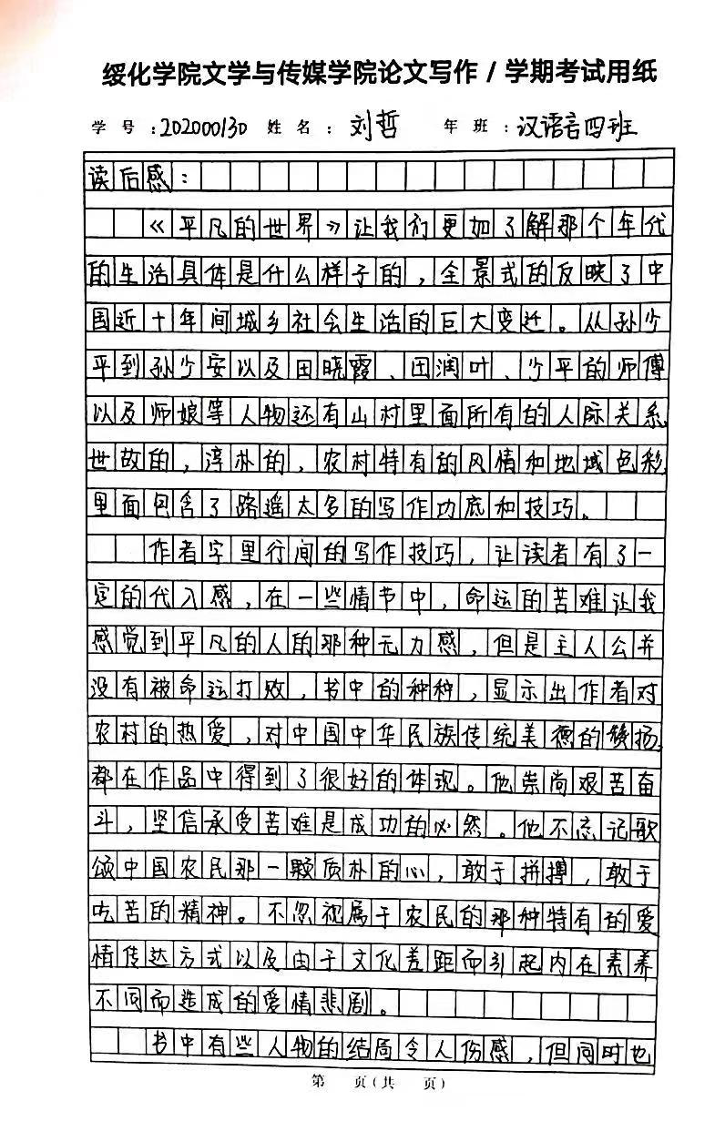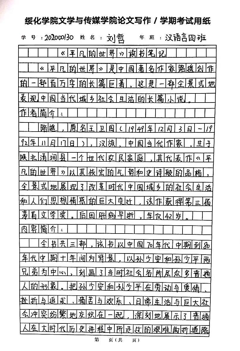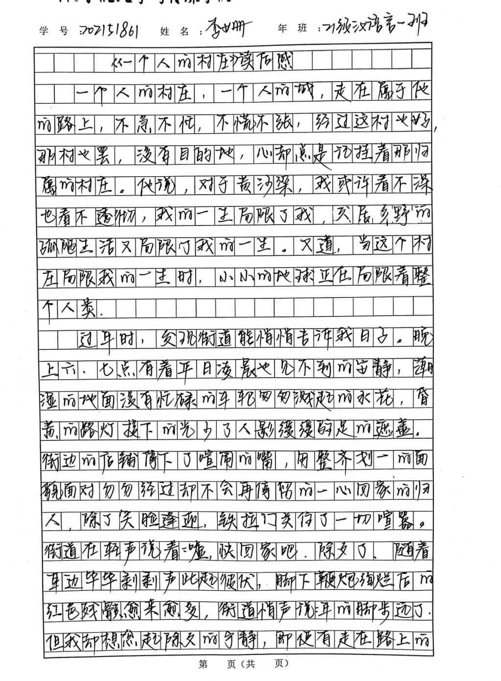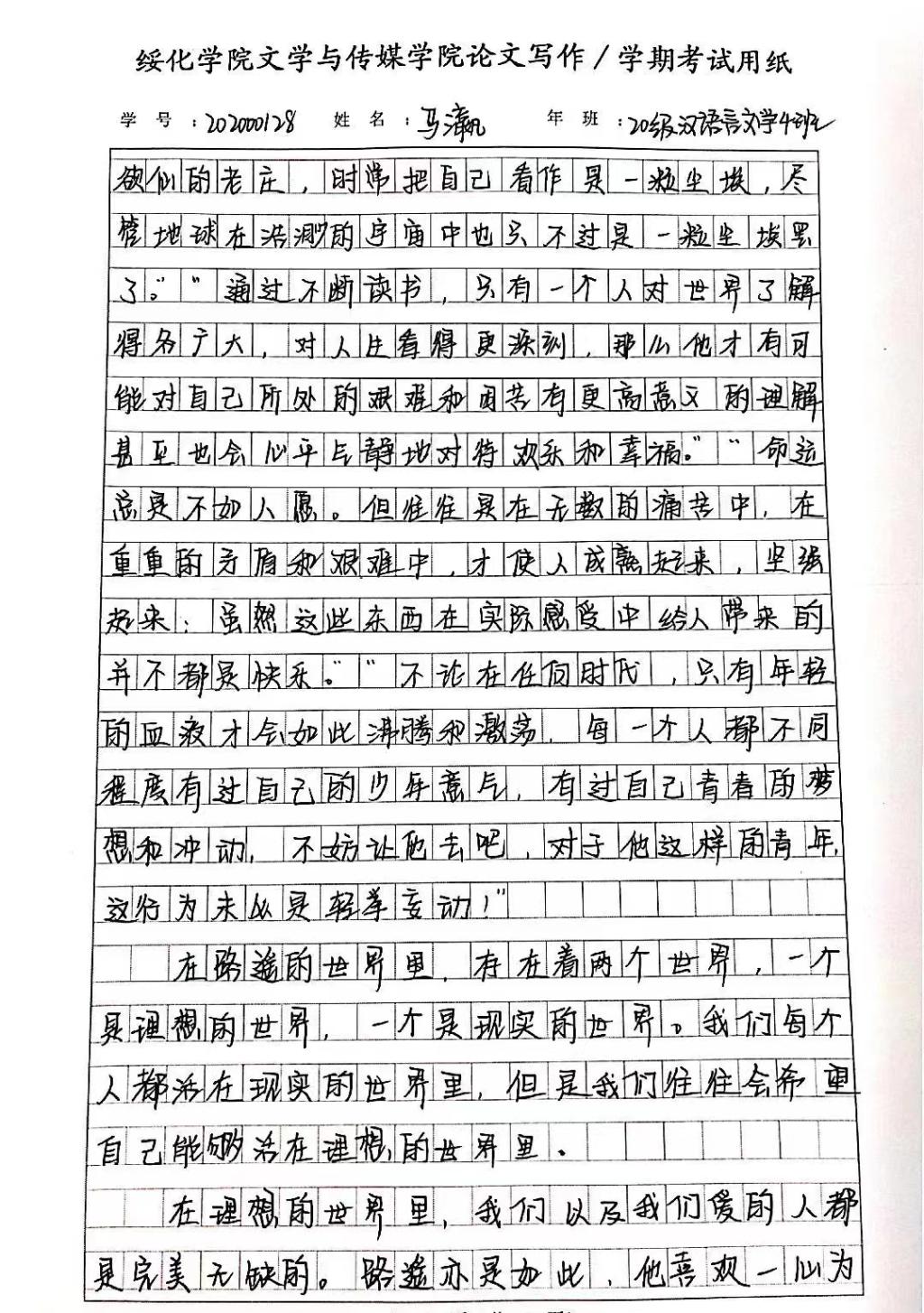 优美的文笔让人流连,美好的故事引人遐想。喜迎二十大胜利召开,beat365英国官方网站开展”“品读文学,书香共赏”活动,为优秀的作品提供平台,让飞扬的文采得以挂靠。食髓知味,落笔成文,这里是放飞思绪的一方天地,这里是共话文学的青春殿堂,我们怀言引玉,我们邀你共赏。2020级汉语言文学四班刘哲