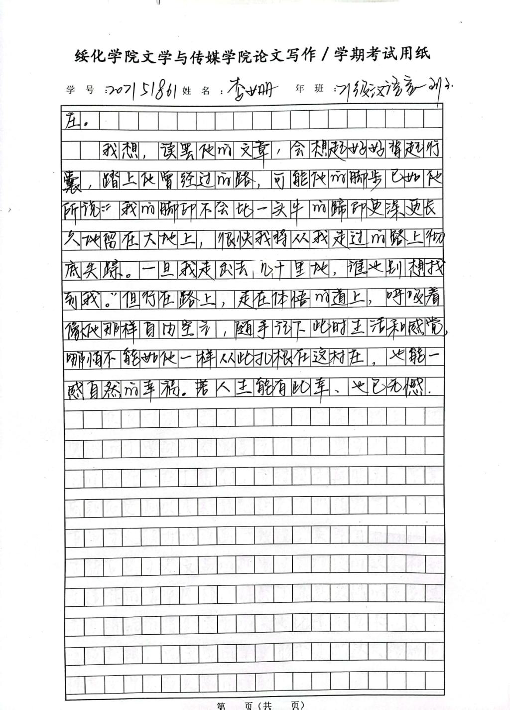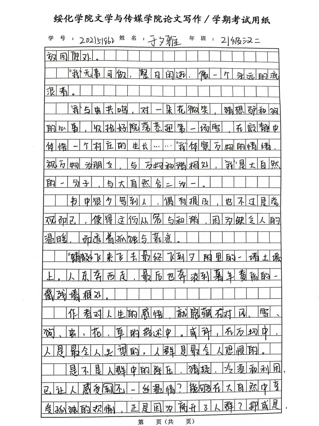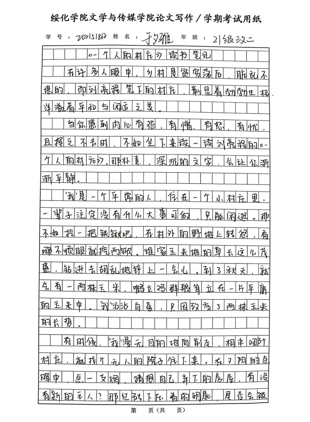 优美的文笔让人流连,美好的故事引人遐想。喜迎二十大胜利召开,beat365英国官方网站开展”“品读文学,书香共赏”活动,为优秀的作品提供平台,让飞扬的文采得以挂靠。食髓知味,落笔成文,这里是放飞思绪的一方天地,这里是共话文学的青春殿堂,我们怀言引玉,我们邀你共赏。2020级汉语言文学四班刘哲