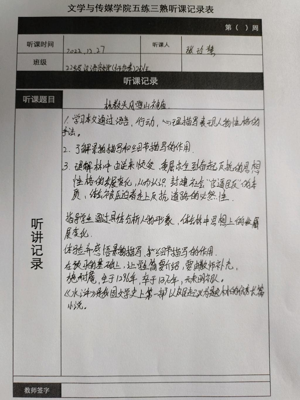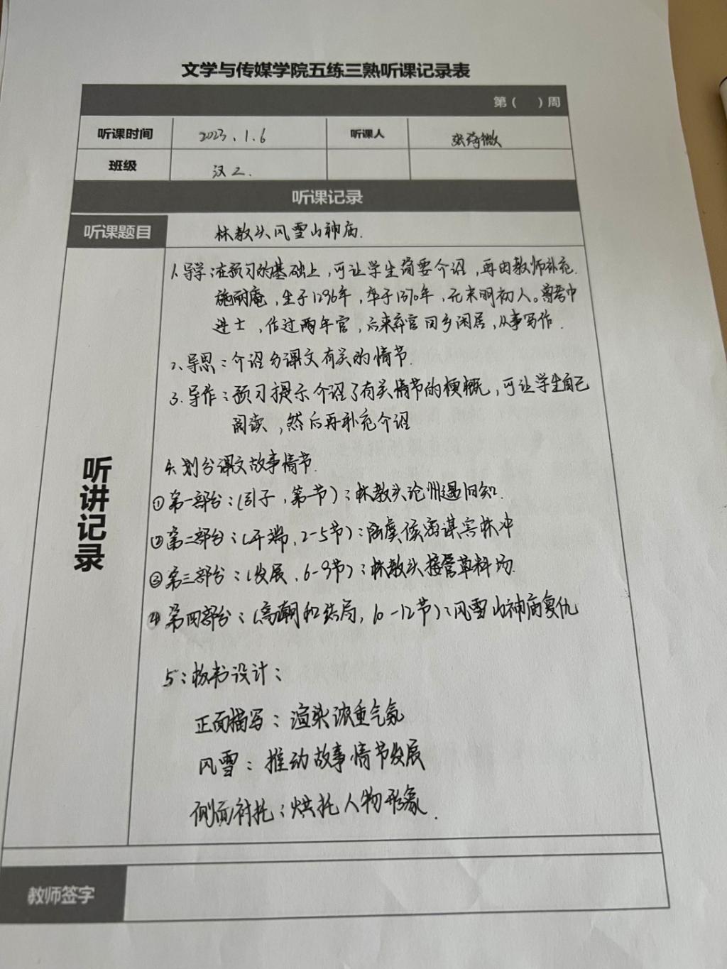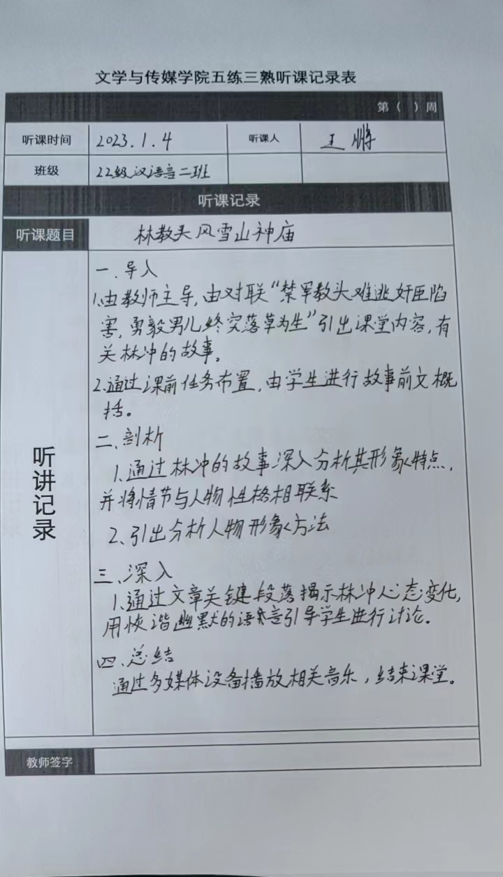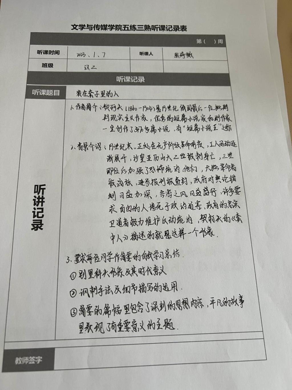 听课记录是听课的第一手资料,是课后进行教学反思交流的材料和依据,更是促进教师专业成长和提高教学水平的极其宝贵财富,为使汉语言专业学生更好的学习专业技能,beat365英国官方网站特开展听课笔记优秀作品展示活动,让我们一起来看看同学们的听课记录表吧!