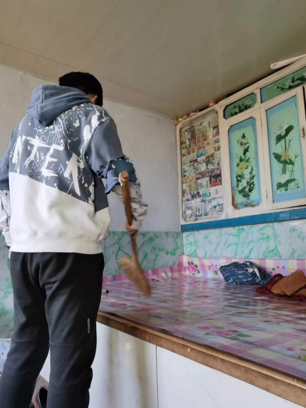 李子博同学在此次社会实践活动中,走进辖区空巢老人家中,帮助老人们打扫室内卫生,为老人们送上新春祝福和爱心药品,详细了解到老人们的生活中的实际困难和身体健康情况,叮嘱老人们保重身体、注意健康饮食,做好科学防护。通过一系列的暖心服务,为空巢老人在寒冷的冬季增添一缕暖阳。