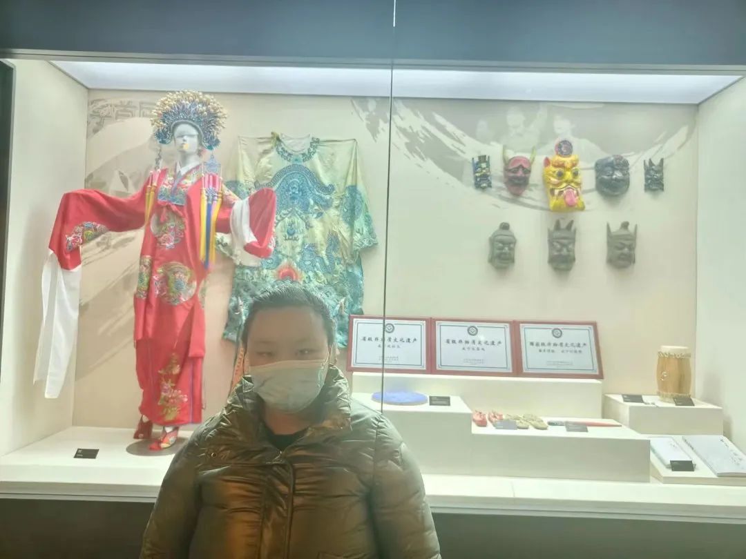 寒假期间,顾书群同学通过上网查阅资料、实地参观县博物馆和文化广场、观看演出活动等方式,对当地的民俗、风土、人情等传统文化有了更为深刻的认识。在家乡博物馆她看到了布贴画、社火、采茶戏、打鼓歌等作品,她表示自己最喜欢博物馆中那幅名为《硕果》的布贴画作品,柿子寓意事事如意,蜜蜂寓意勤劳甜蜜,象征着劳动人民对新年的美好祝愿。通过这次实践活动,充分认识到了家乡的风土人情与人文传承,希望这些中华优秀传统文化能走得更远。