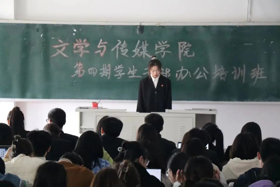 为深刻践行党的二十大精神,增强学生骨干队伍担当,弘扬务实求真的作风,全面提升学生骨干业务能力。4月26日晚beat365于汇文楼624教室召开学生干部培训会,本次培训由2021级汉语言文学(师范类)一班权益部副部长李彭玉同学主讲,学院学生会全体学生干部参加培训。