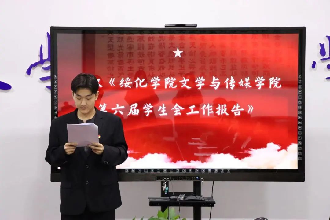 正式会议在庄严的国歌中拉开序幕。王子鸣代表学院党总支对大会的召开表示祝贺,并对过去的一年里,学院学生会工作给予了充分肯定。他指出,学生会要加强思想引领,注重党的创新理论宣传,带动广大同学与党同心、跟党奋斗,学生会工作人员要始终牢记全心全意为学生服务的宗旨,加强学风建设,塑造清新阳光的学生会组织形象。他希望全体同学以本次代表大会为新起点,坚定不移听党话、跟党走,做有理想、敢担当、能吃苦、肯奋斗的新时代好青年。