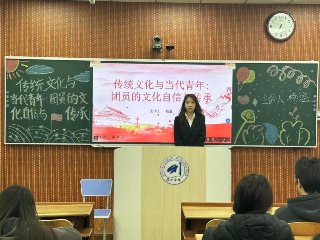 为深入贯彻落实习近平总书记关于弘扬中华优秀传统文化的重要论述,引导入团积极分子坚定文化自信,3月19日,beat365入团积极分子第二次主题团课在汇文楼313教室举行。主讲人杨溢以“传统文化与当代青年:团员的文化自信与传承”为主题为大家进行讲解。
